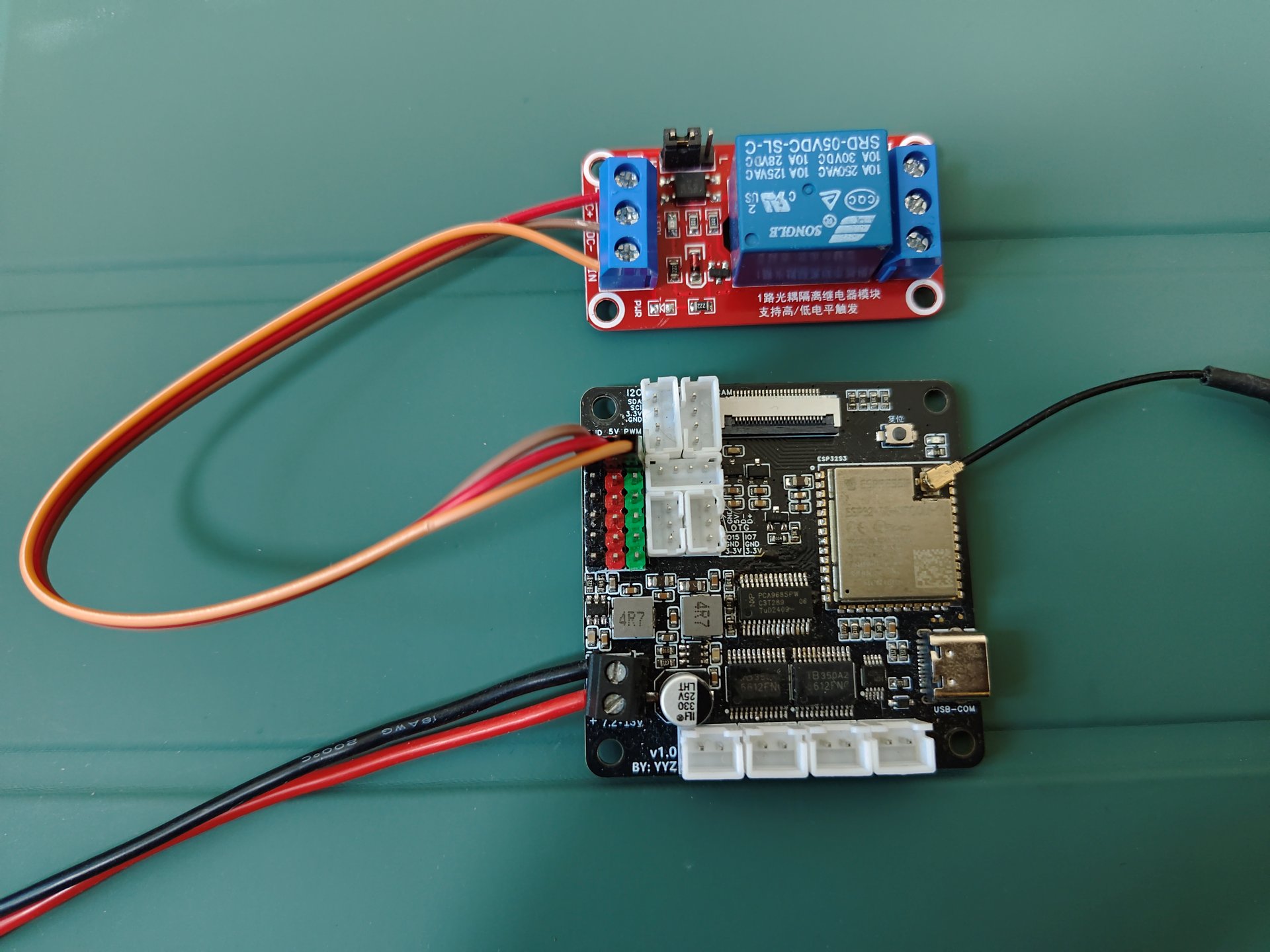 这里将继电器的控制引脚连接到支持电平输出的引脚,这里我们连接到IO17引脚