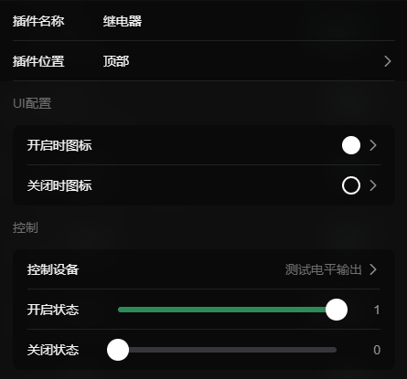 插件设置,控制设备栏选择我们刚刚新增的电平输出
