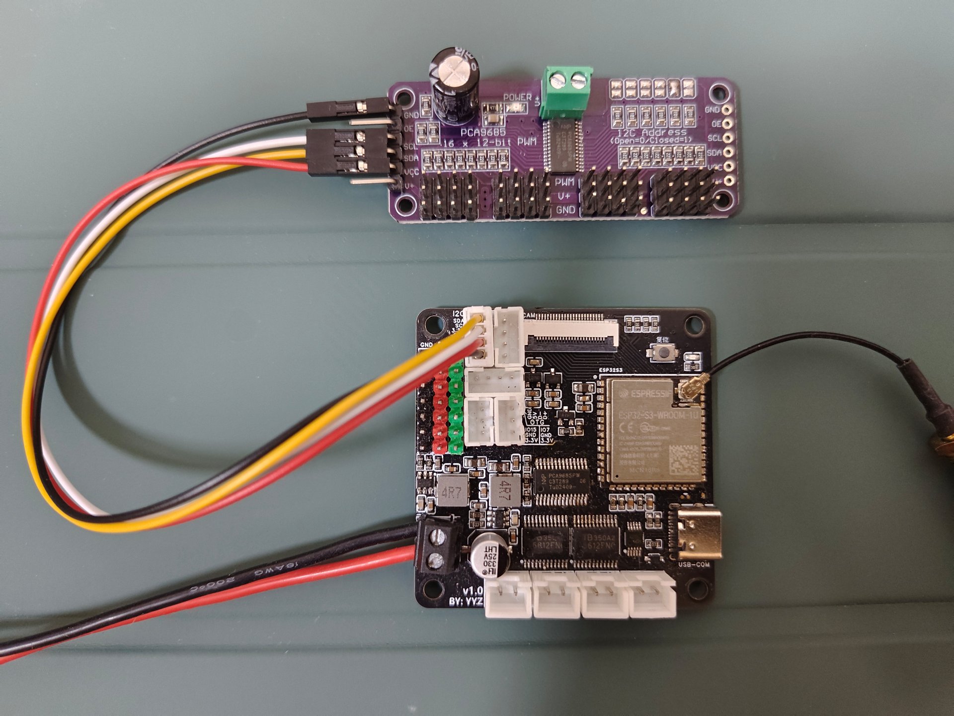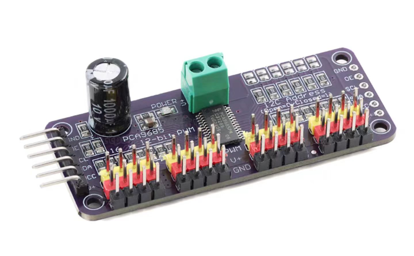 下面将演示连接一个非常常见的PCA9685的扩展板