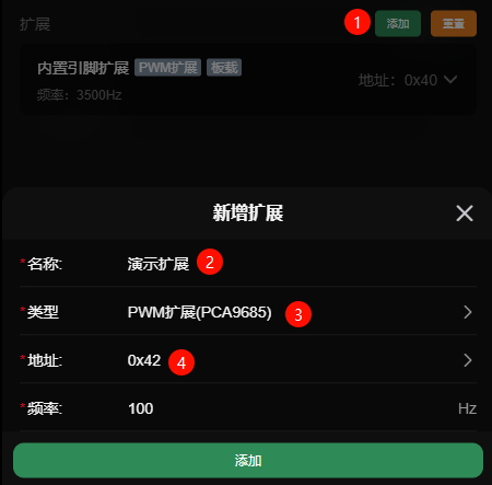 - 频率*: PWM输出的频率(只有部分板子支持)