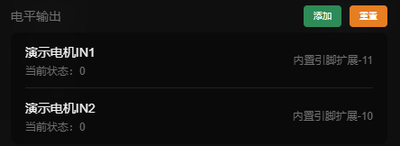 组合依赖pwm和电平输出,会使用一个或多个pwm和电平组合成一个新的设备,主要是用于驱动一些驱动芯片,例:L298N, L9110S,BTS7960B等